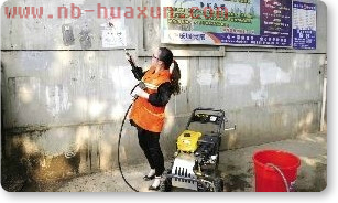 強大的水流從噴槍中噴射而出,一分鐘后,粘貼在墻面上的小廣告立馬被清除得一干二凈。昨日,東西湖區城管局花費2.5萬元購進一臺進口高壓清洗機,并首次投入使用,專用于清除亂寫亂畫、亂粘貼的城市小廣告污染